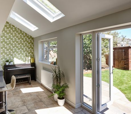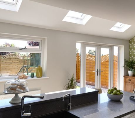 Three VELUX roof windows were installed into the kitchen and dining room extension, flooding the entire space with natural light. The double doors, which open onto the garden, also brighten the room with daylight, bringing the outdoors in and allowing them to make the most of the views into their garden.