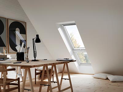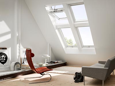 For narrow rooms, such as above stairs, the VELUX Duo solution brings more daylight deep into the room. By adding an additional roof window, you can enhance the feeling of spaciousness, maximise natural light and create an architectural feature in other-wise often dark and overlooked spaces.